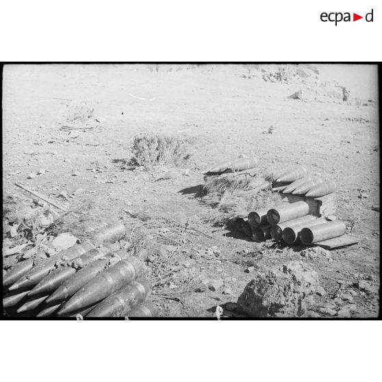 Obus de 152 mm abandonnés par les Allemands du 190 Artillerie-Regiment 190 mot. de la 90. Panzergrenadier division, à l'issue des combats au col de Teghime.