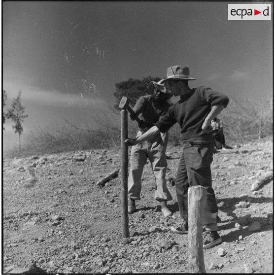 Travaux de fortification au poste de Da Phuc tenu par le 27e bataillon de marche de tirailleurs sénégalais (BMTS).