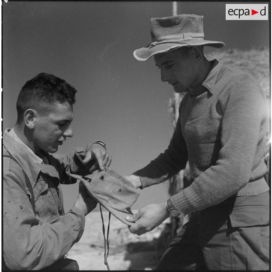 Des tirailleurs du 27e bataillon de marche de tirailleurs sénégalais (BMTS) nettoient des armes au poste de Da Phuc.