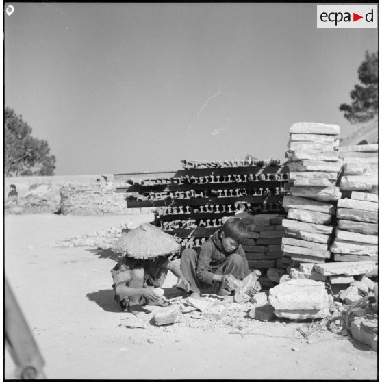Préparation des briques par des enfants vietnamiens au poste de Da Phuc.