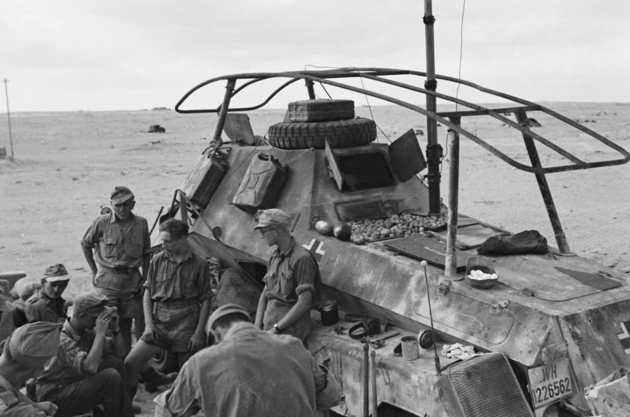 Des tomates terminent de murir sur le toit d'un semi-chenillé de reconnaissance Sd.Kfz.263 Funkspahwagen (8-rad) immatriculé WH-1226552.