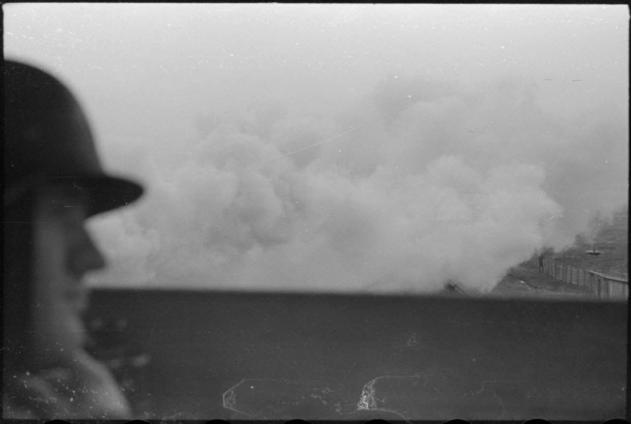 Déplacement d'un train à bord duquel une unité de la Luftwaffe a pris place.