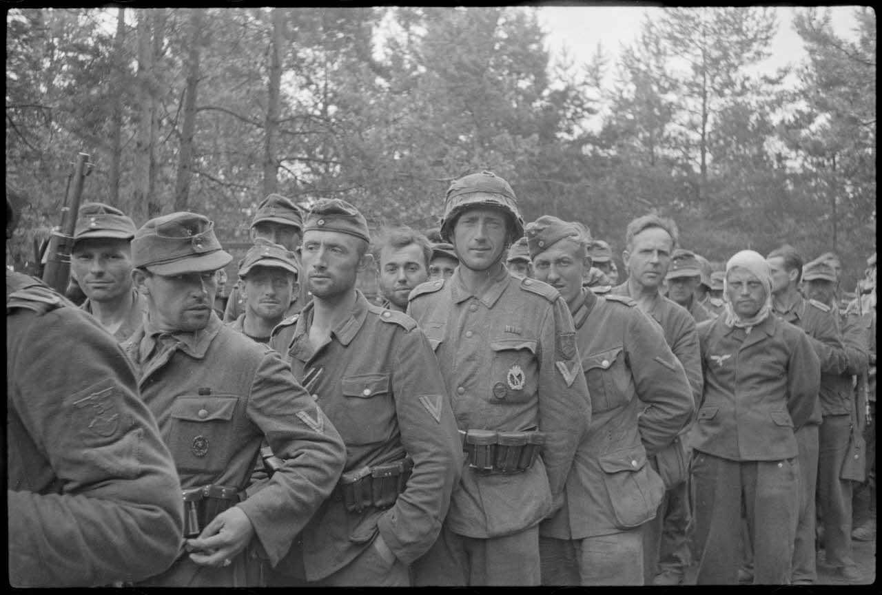 La photo PK697 F1048A L01 est publiée par l'agence Atlantik avec le titre suivant : Der Durchbruch der tapferen Wilna-Besatzung. La date publiée est le 28/07/1944.