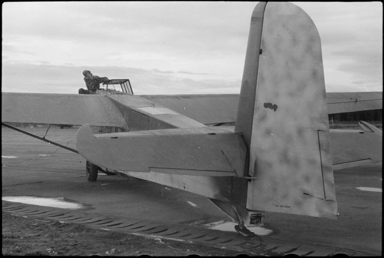 Des vérifications d'usage avant une mission pour un planeur DFS-230 du Luftlandegeschwader 1 (8./LLG 1) sur la piste du terrain d'aviation de Banak.