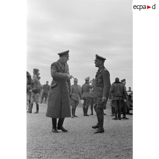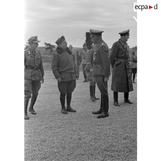 Le général italien Ugo Cavarello en conversation avec le général allemand Ludwig Crüwell.