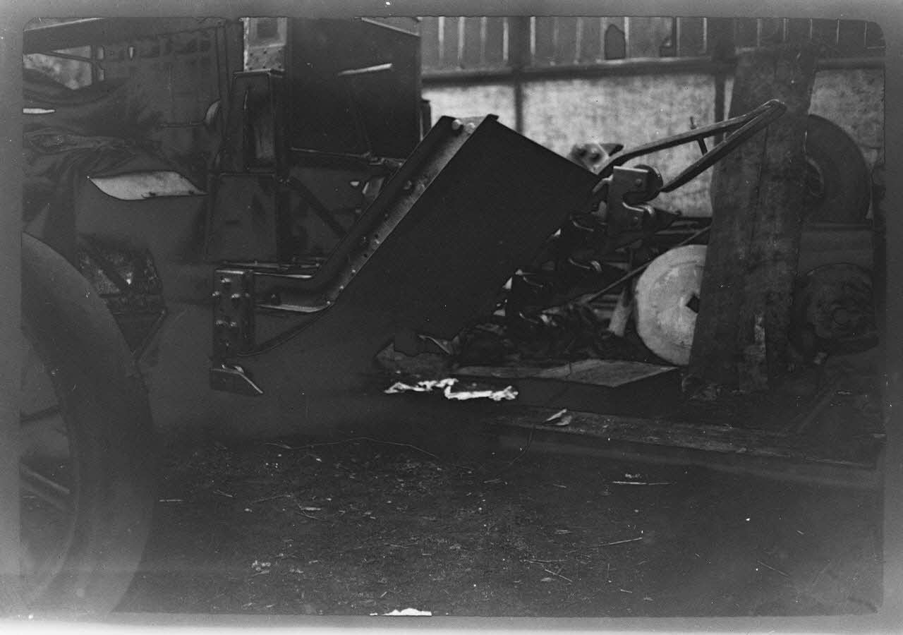 Reportage de négatifs ayant servi au tirage de plusieurs autres plaques de verre et tirage sur papier qui traite des essais du prototype de char Saint-Chamond à Vincennes ainsi que des essais en usine du tracteur modifié appelé "appareil Breton-Pretot". Tous deux témoignent de l'investissement de Jules-Louis Breton dans le développement d'une solution de franchissement des barbelés qui a mené à l'élaboration des chars Schneider et Saint-Chamond.