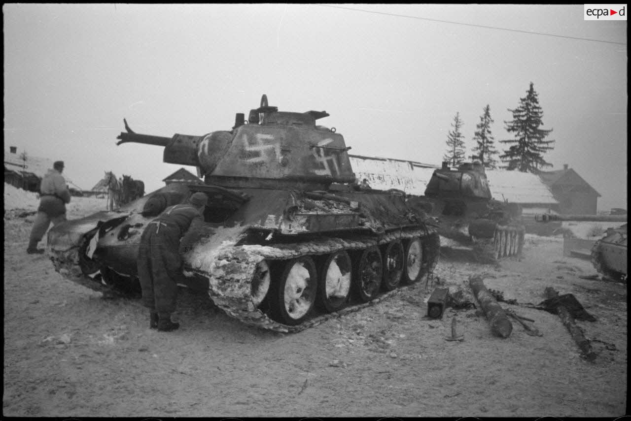 Un char T-34 suscite l'intérêt des soldats allemands.
