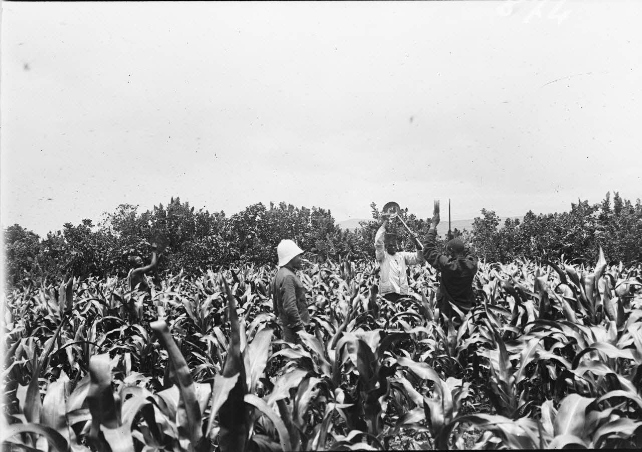 Edgard Imbert (1873-1915), sous-lieutenant de l'infanterie coloniale et photographe, est en poste à Madagascar du 10 février 1900 au 23 avril 1902. Arrivé à Betroka, il rend compte de la vie quotidienne du village, du travail des habitants dans les rizières et fait des portraits des officiers de l'infanterie coloniale. Il prend de nombreux clichés du passage d'un essaim destructeur de sauterelles.