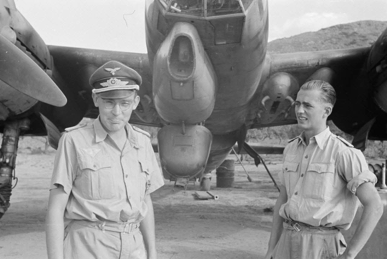Deux officiers du Aufklärungsgruppe 123 devant un avion de reconnaissance Junkers Ju-88.