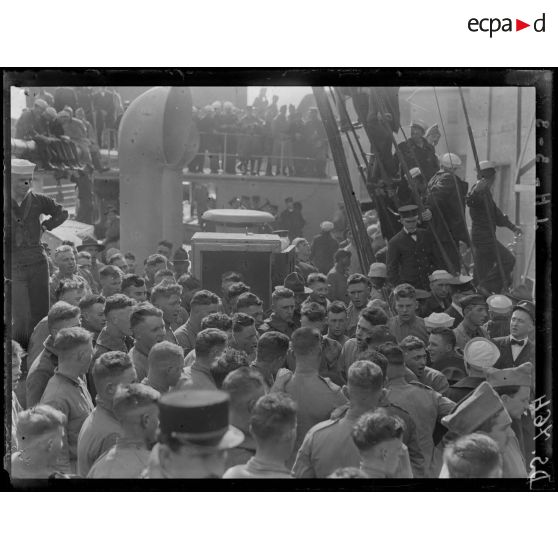 San Francisco. Les Américains sur le quai. Le maire de la ville en premier plan, tête nue.