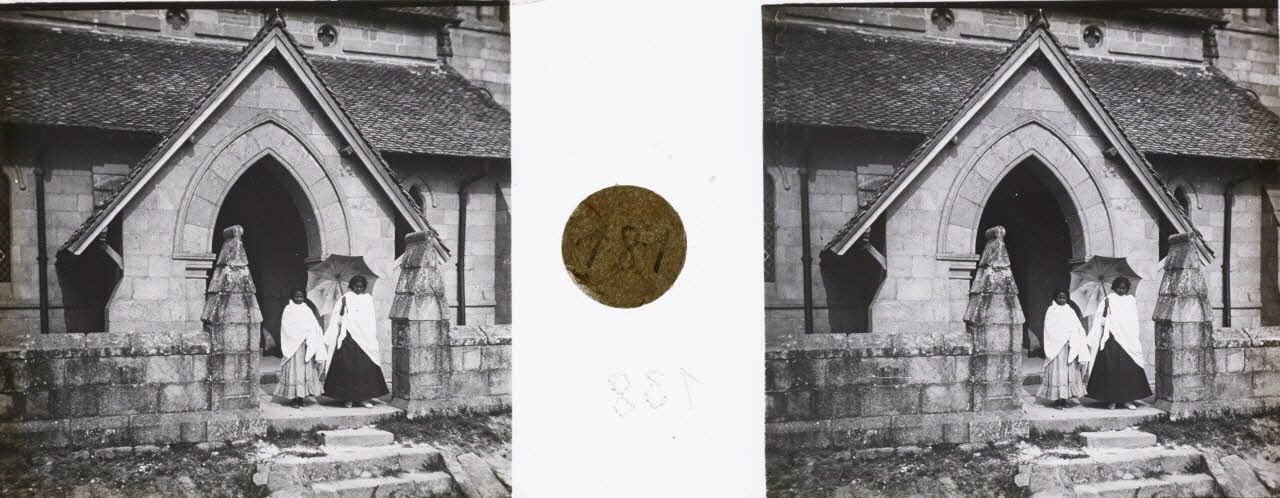 Deux Ramatoas sortent du temple d'Ambohipotsy. [légende d'origine]