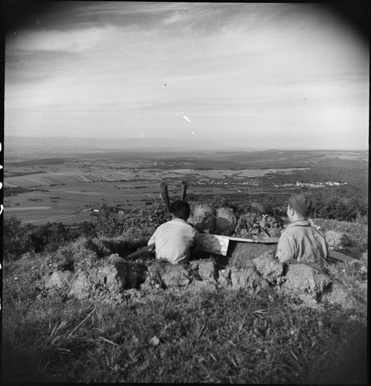 Deux résistants FFI dans un observatoire près du fort de Lomont.