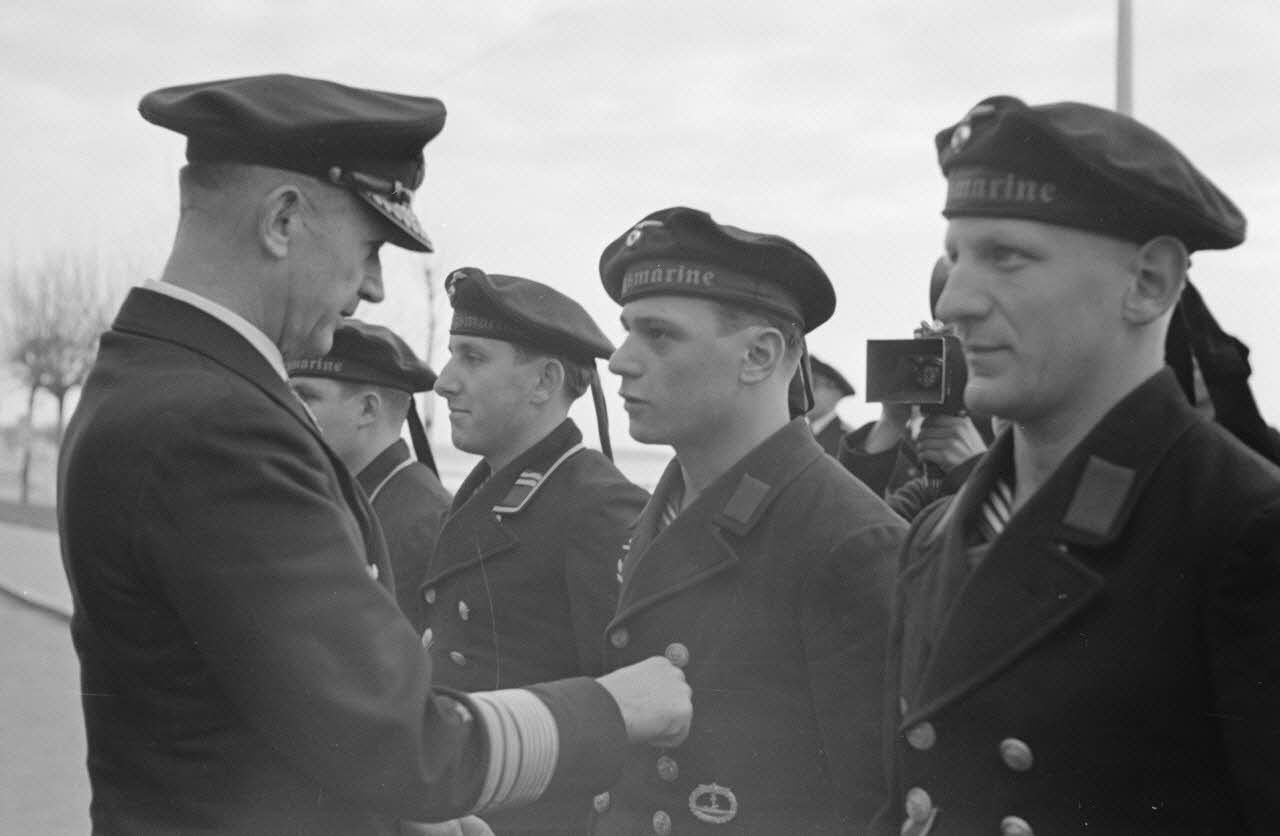 L'amiral Dönitz remet des décorations (croix de fer) en présence du capitaine de corvette (Korvettenkapitän) Herbert Sohler, représentant de la 7.Unterseebootsflottille.