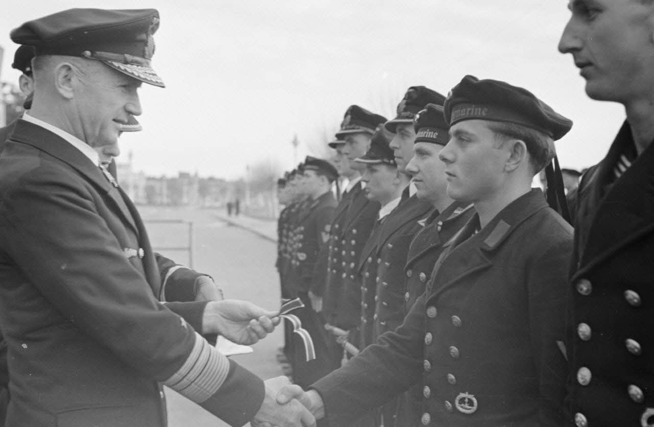 L'amiral Dönitz remet des décorations (croix de fer) en présence du capitaine de corvette (Korvettenkapitän) Herbert Sohler, représentant de la 7.Unterseebootsflottille.