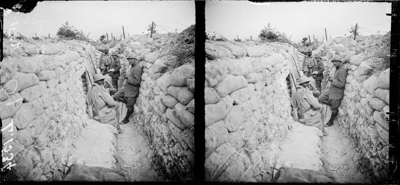 - devant la butte de Souain (Marne) : sénégalais dans une tranchée (SPA 27 L 1531).