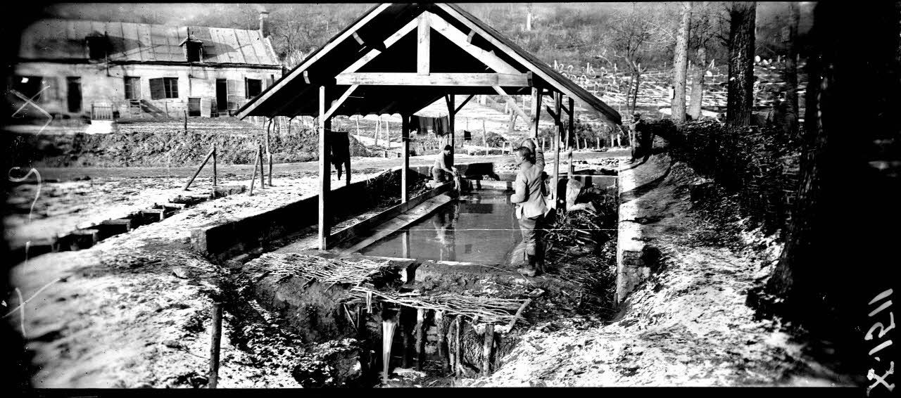 Devant la ferme de Bimont près de Tracy-le-Val (Oise). Le lavoir. [légende d'origine]