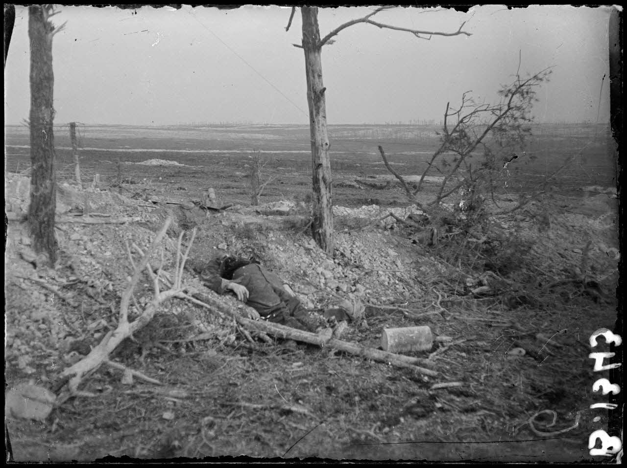 Bois Bricot. Cadavre allemand qui a eu le crâne ouvert par un obus.