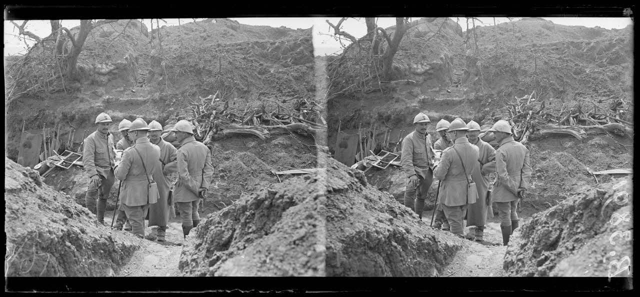 Devant le bois des Croisettes, tranchée Tatoï, état-major du 3e bataillon du 60e régiment d’infanterie, 1/4 d’heure avant l’attaque. [légende d’origine]