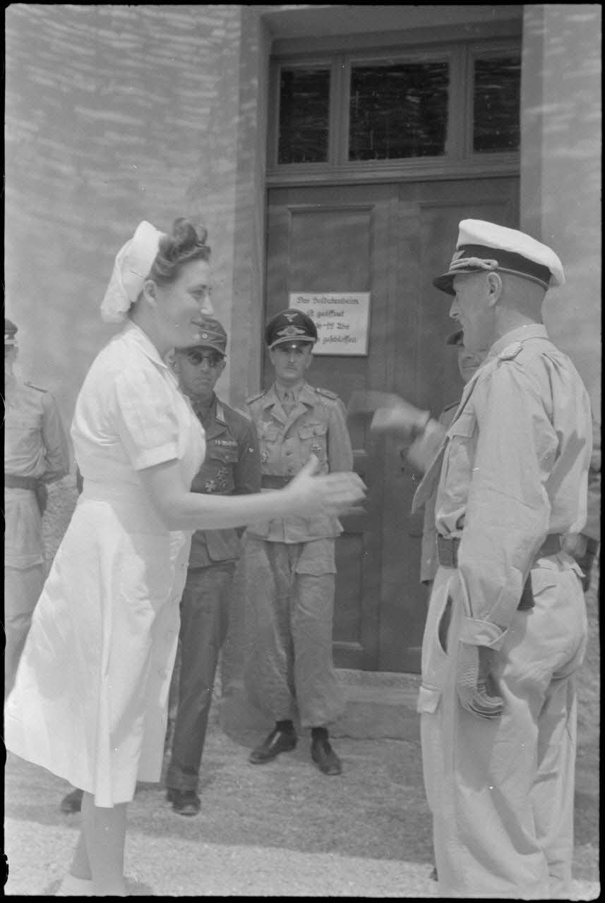 Au foyer du soldat (Soldatenheim) de Skaramangas où est basé le 1er groupe du Seeaufklärungsgruppe 126, une infirmière est mis à l'honneur.