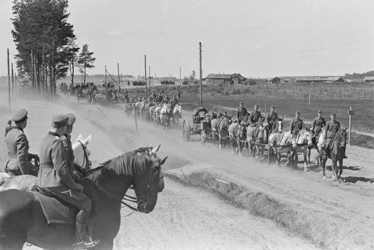Dans le nord du groupe d'armées Centre, un défilé en présence du général Theodor Scherer, commandant de la 83e division d'infanterie (83. Infanterie-Division).