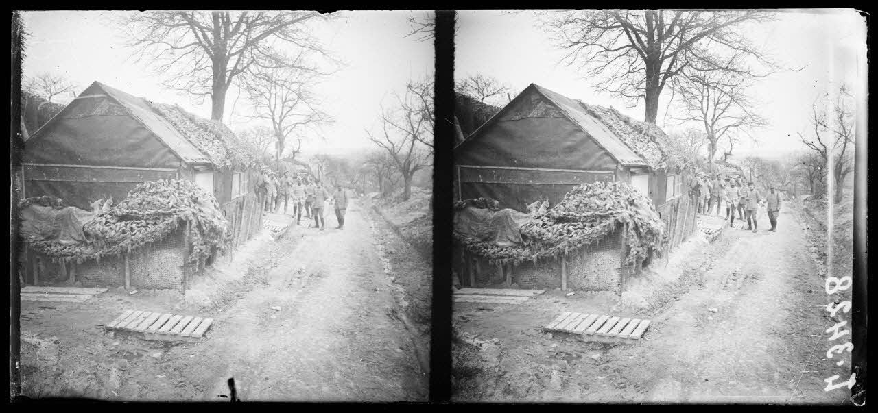 - les tranchées de Calonne (SPA 71 L 3430 à 3433/3437), des soldats américains déchargent du matériel d'un train de chemin de fer, les baraquements, un abri, des soldats américains réceptionnent des caisses de rations de combat (voir en film 14.18 A 1150) ;