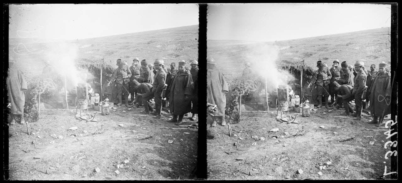 Devant Verdun, Ravin des Vignes, cantonnement des troupes marocaines. Une cuisine.