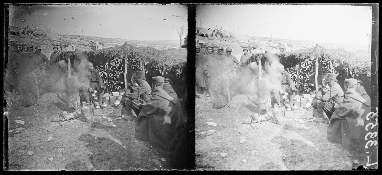 Devant Verdun, Ravin des Vignes, cantonnement des troupes marocaines. Le café.