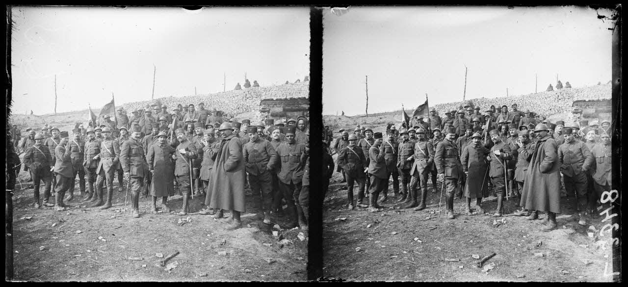 Des visites officielles et un cantonnement de tirailleurs marocains dans la région fortifiée de Verdun en mars 1918.
