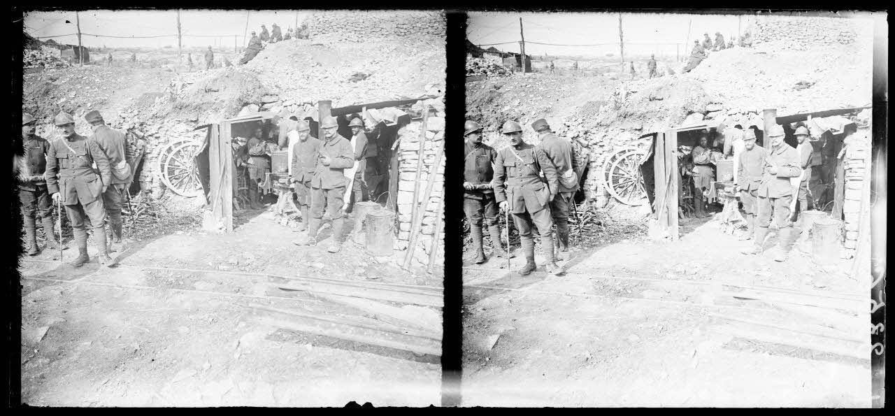 Devant Verdun, Ravin des Vignes, cantonnement des troupes marocaines. Le café.