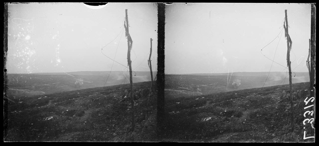 - l'éclatement d'un obus (un nuage de poussières) au ravin des Vignes (SPA 68 L 3312) ;