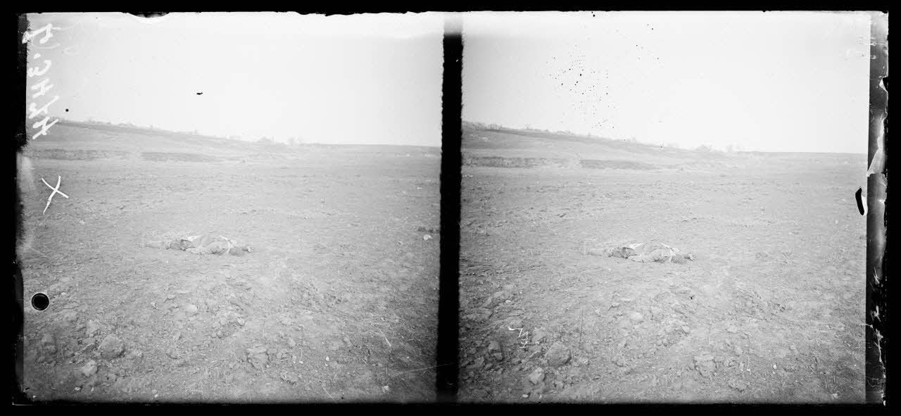 Devant Villers-Bretonneux (Somme). Cadavre d'un soldat allemand. [légende d'origine]