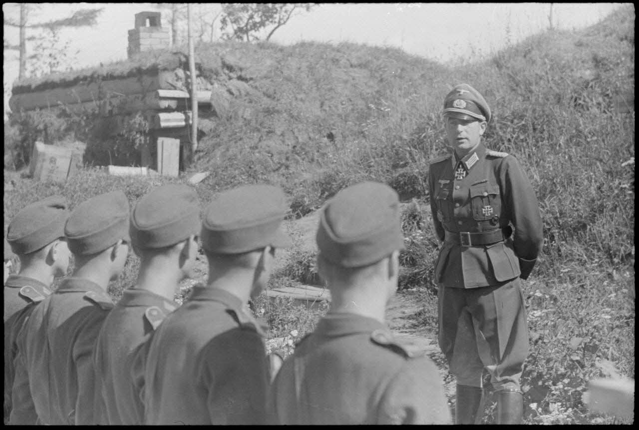 Note : le Major Hans Müller évolue au sein du Infanterie-Regiment 111, 35. Infanterie-Division. La date du reportage ne peut correspondre à la date de remise de la croix de chevalier de la croix de fer (Ritterkreuz) le 18 février 1943. Les images Pk.697 film 771 L16aet L17a présentent des meules de foin réalisées à la fin des moissons. Le lieutenant Edwin Stolz est mort au combat le 17/05/1944.
