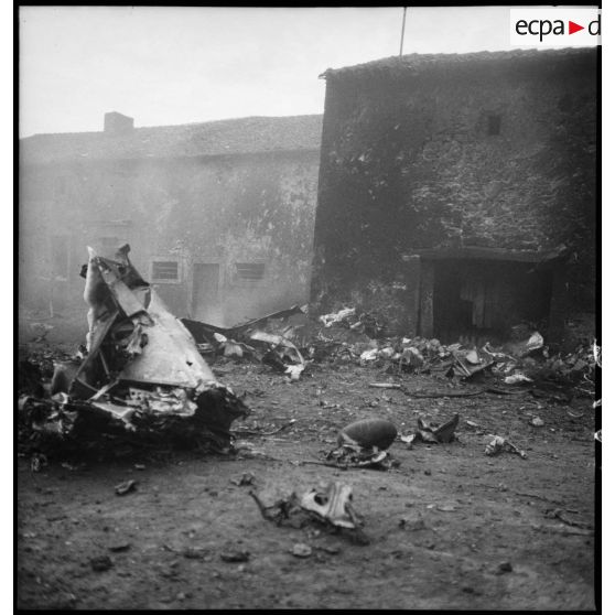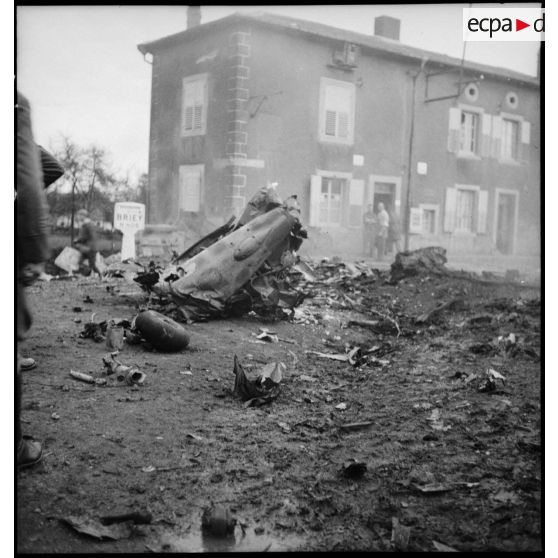 Divers plans d'une carcasse d'avion allemand qui s'est écrasé dans le village de Lubey.