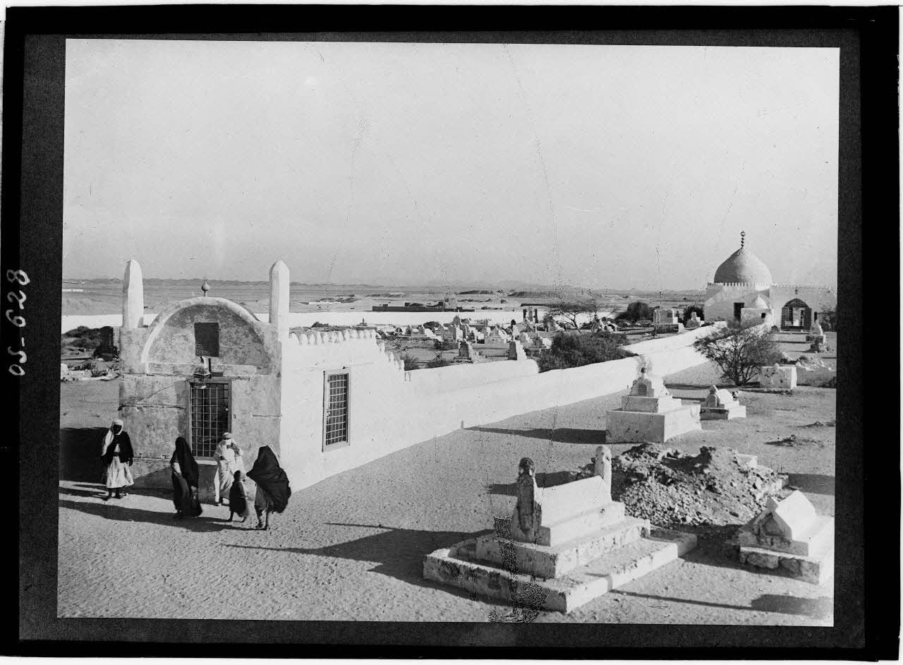 le quartier de la Mecque, le tombeau d'Eve (OS 629), la population indigène, les missions militaires française (façade du bâtiment, photographie de groupe du commandant Cousse et de son état-major) et anglaise (photographie de groupe de soldats soudanais devant le bâtiment).