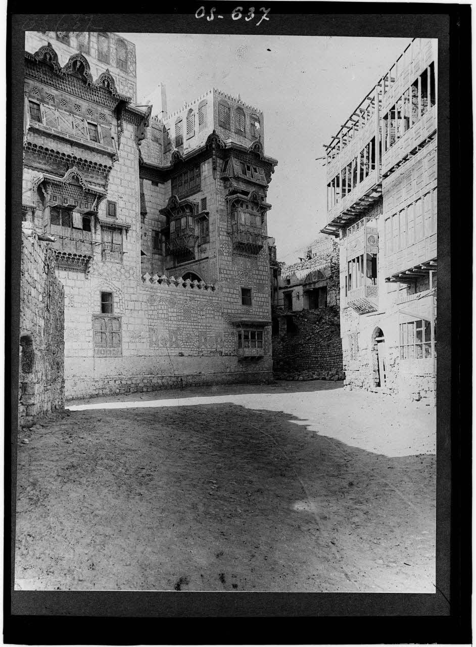Djeddah (Arabie). Vieille maison, à droite remparts et porte du Chérif.