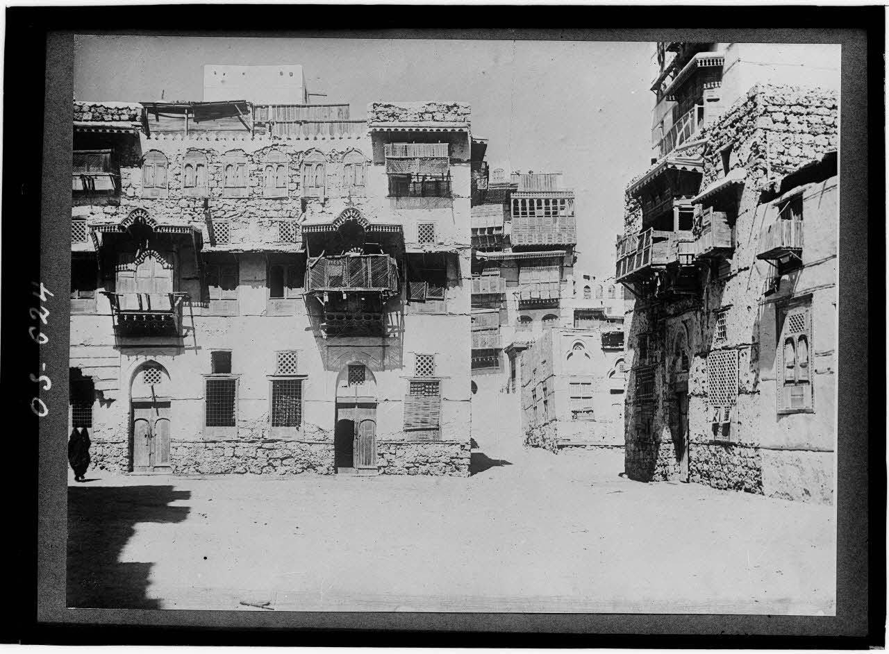 Djeddah (Arabie). Vieille maison, à droite remparts et porte du Chérif.