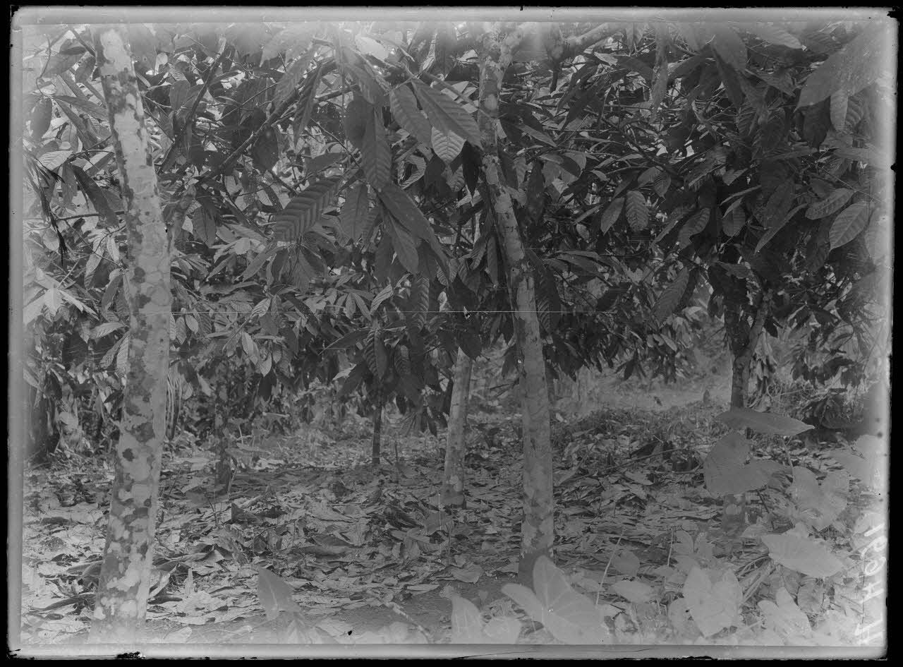 Djombé. Plantation indigène de cacaoyers, de bananiers et de macabos.