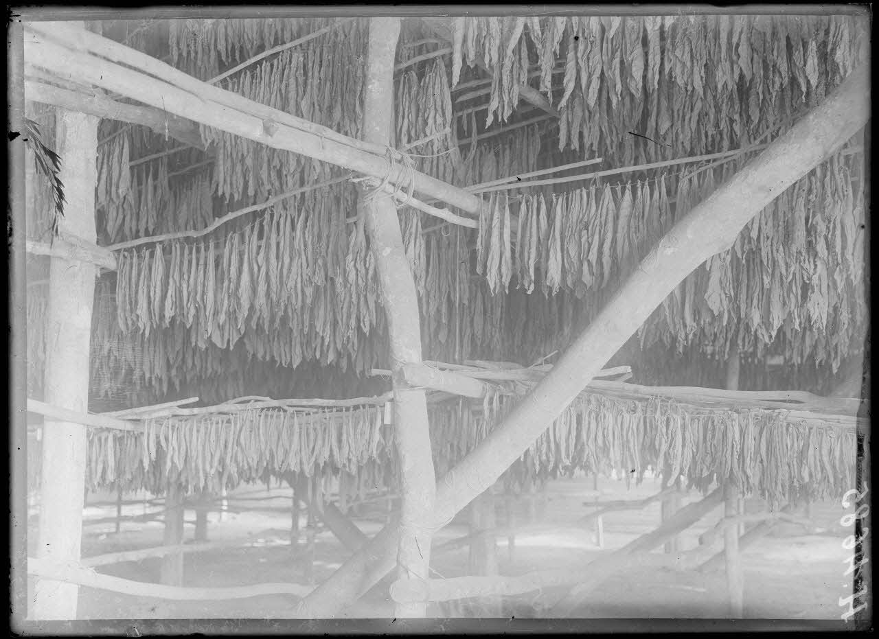 Djombé. Feuilles de tabac dans leur séchoir. [légende d'origine]