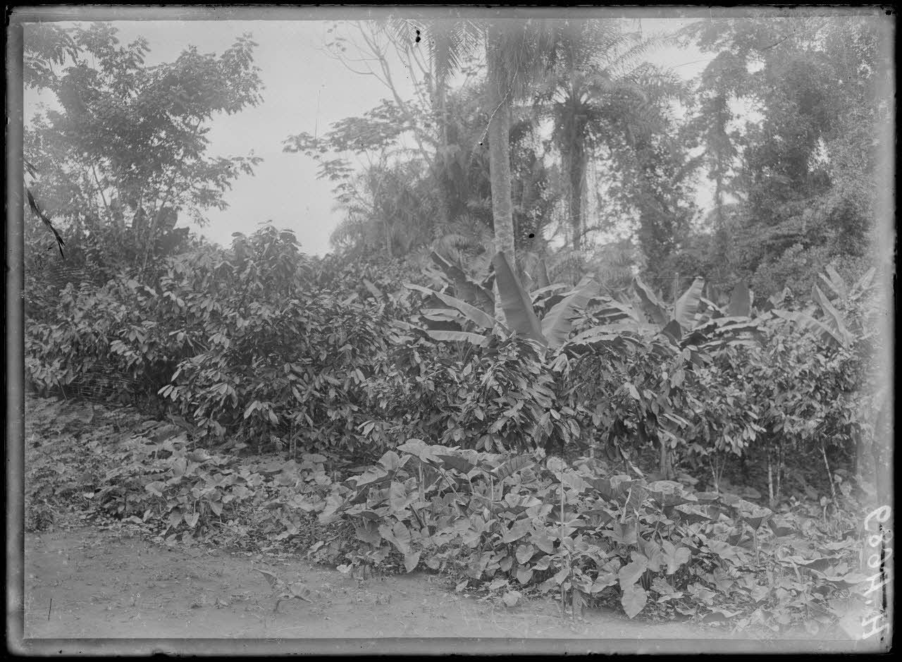 Djombé. Plantation indigène de cacaoyers, de bananiers et de macabos. [légende d'origine]