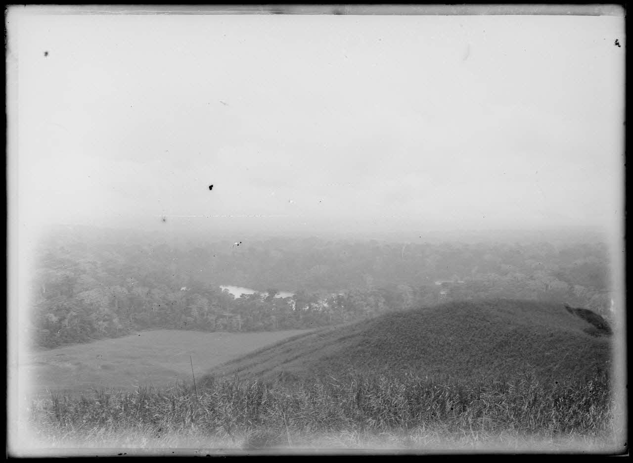 Djongo. ; Djongo. Vue panoramique prise du sommet de la montagne pelée vers la plantation de Djombé.