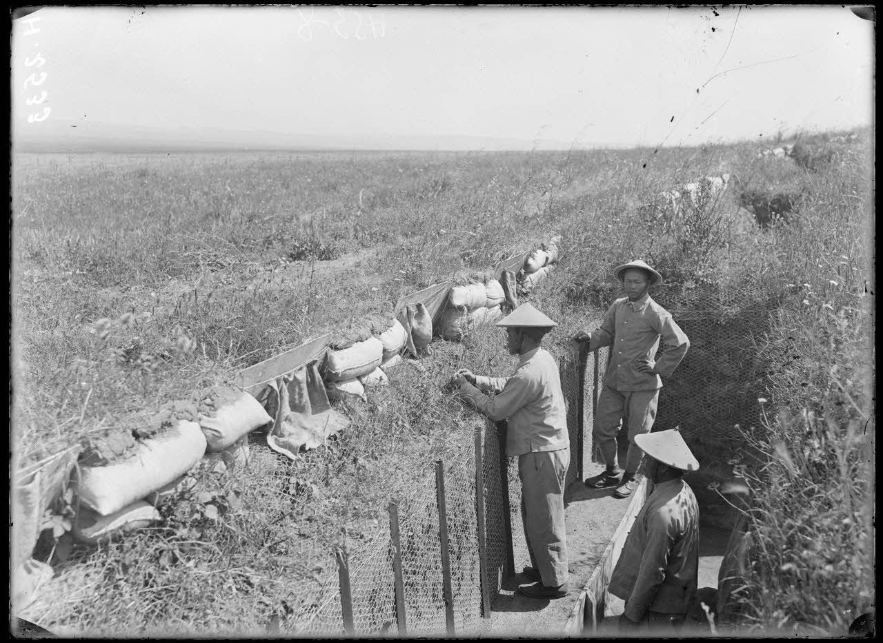 Enfin le 8 juin, à Bounardja où s'est établie la division Guilhem de l'armée serbe, une pièce d'artillerie de 155 mm long est en cours de chargement pour effectuer des tirs. La batterie est installée près de la niche à munitions et de la chambre à poudre. Une cagna a été creusée dans le ravin des zouaves sont à leur poste de sentinelle.