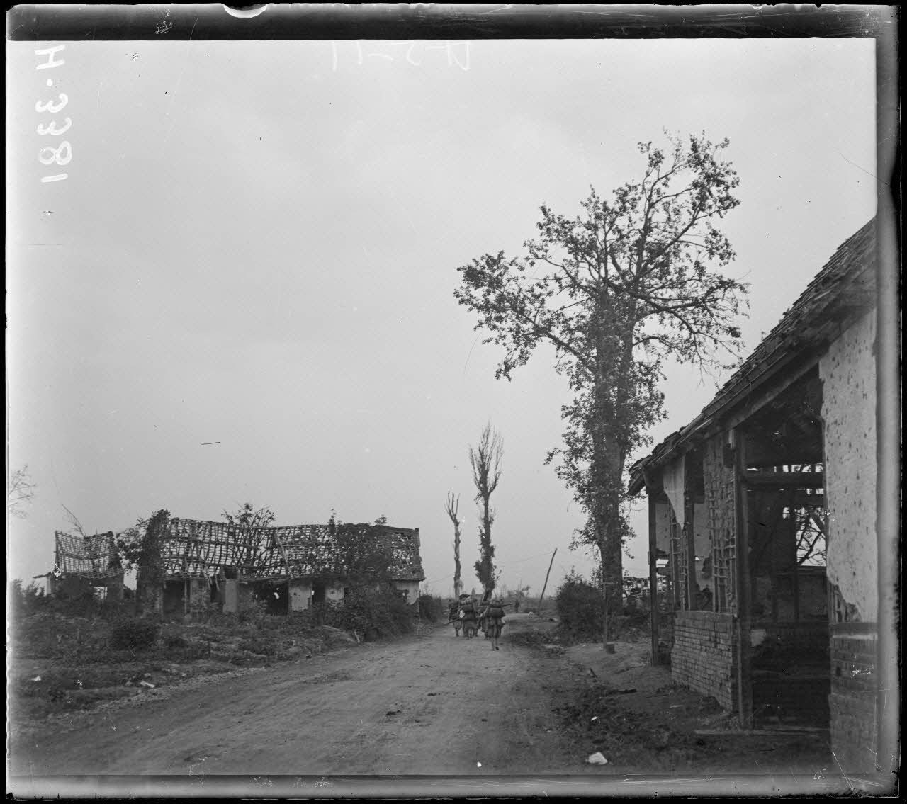 Dompierre (Somme). La route de Herbécourt. [légende d'origine].