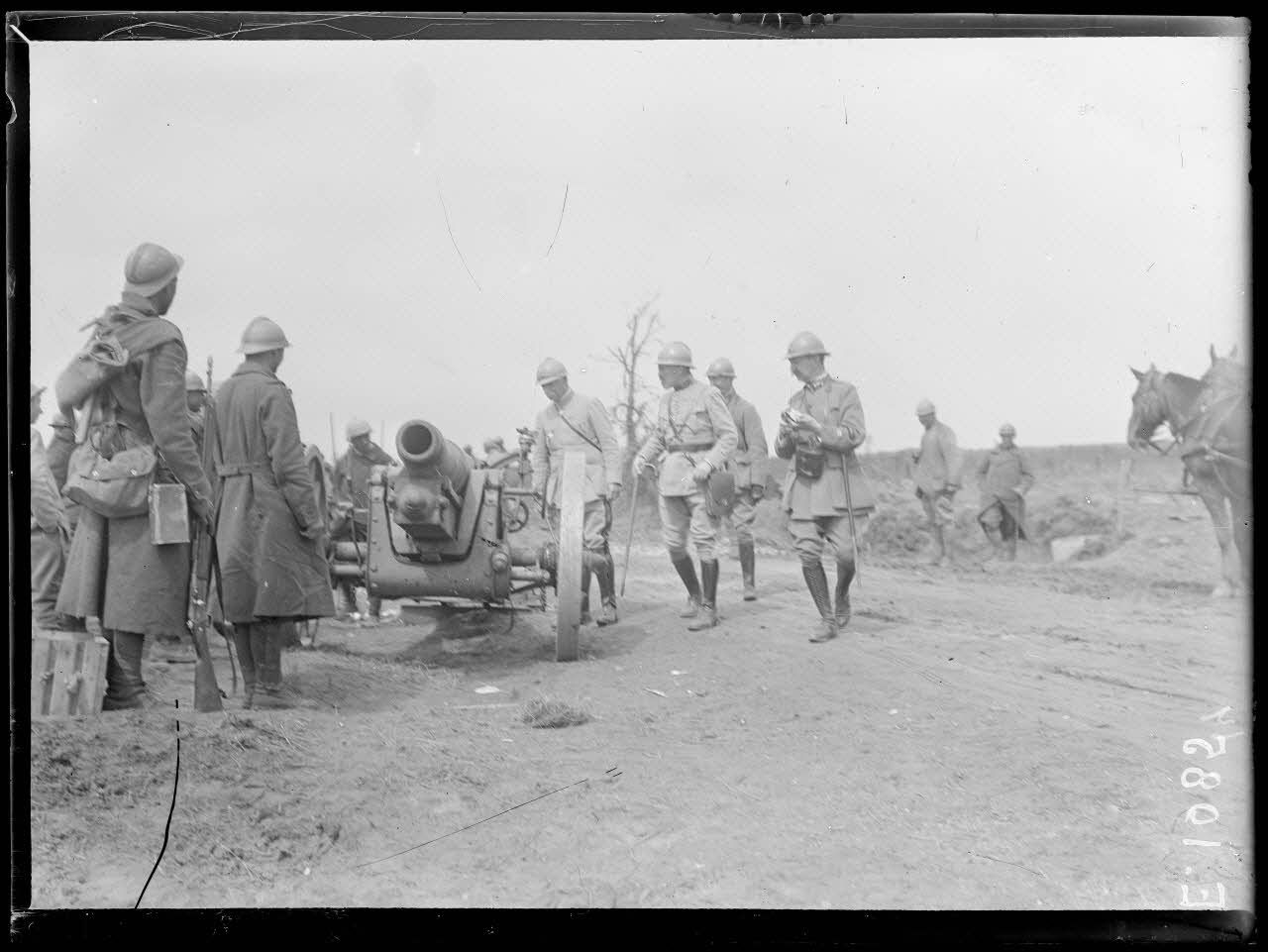 - les pièces d'artillerie françaises : des pièces d’artillerie lourde de marine sur voie ferrée, une batterie de 120 mm, un obusier de 400 mm ;