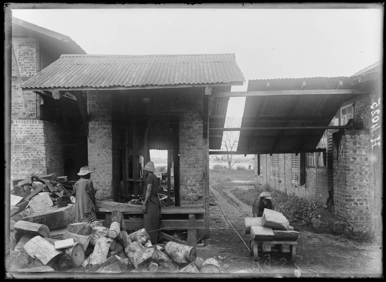 Douala. Akwa. Coupe du bois de chauffage pour les locomobiles de la scierie et de l'usine des eaux. [légende d'origine]