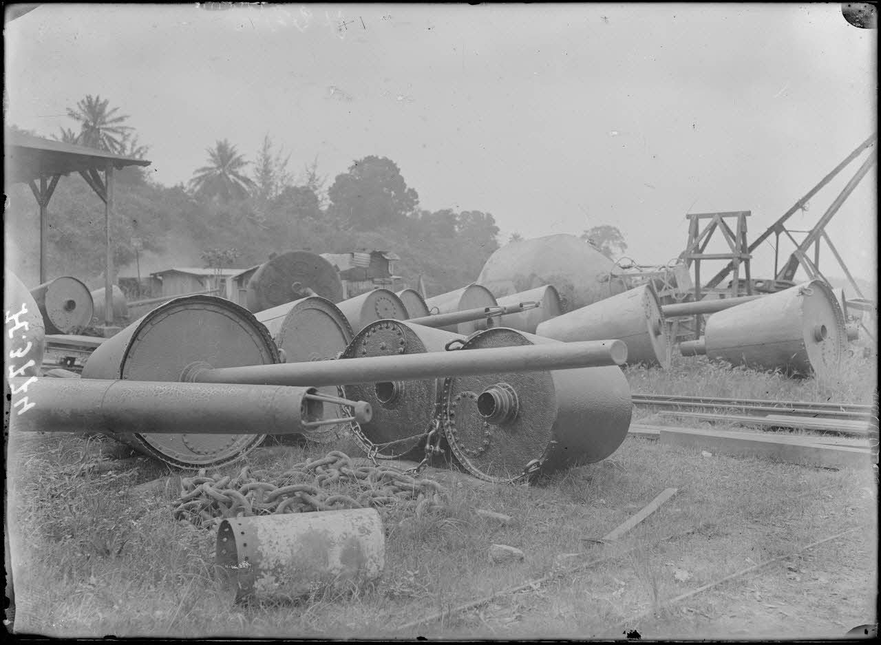 Dans le port, des chalands et des pirogues longent les quais où sont établis des ateliers de métaux, de bouées et une factorerie. Les ateliers sont équipés de tour parallèle de 6 mètres.