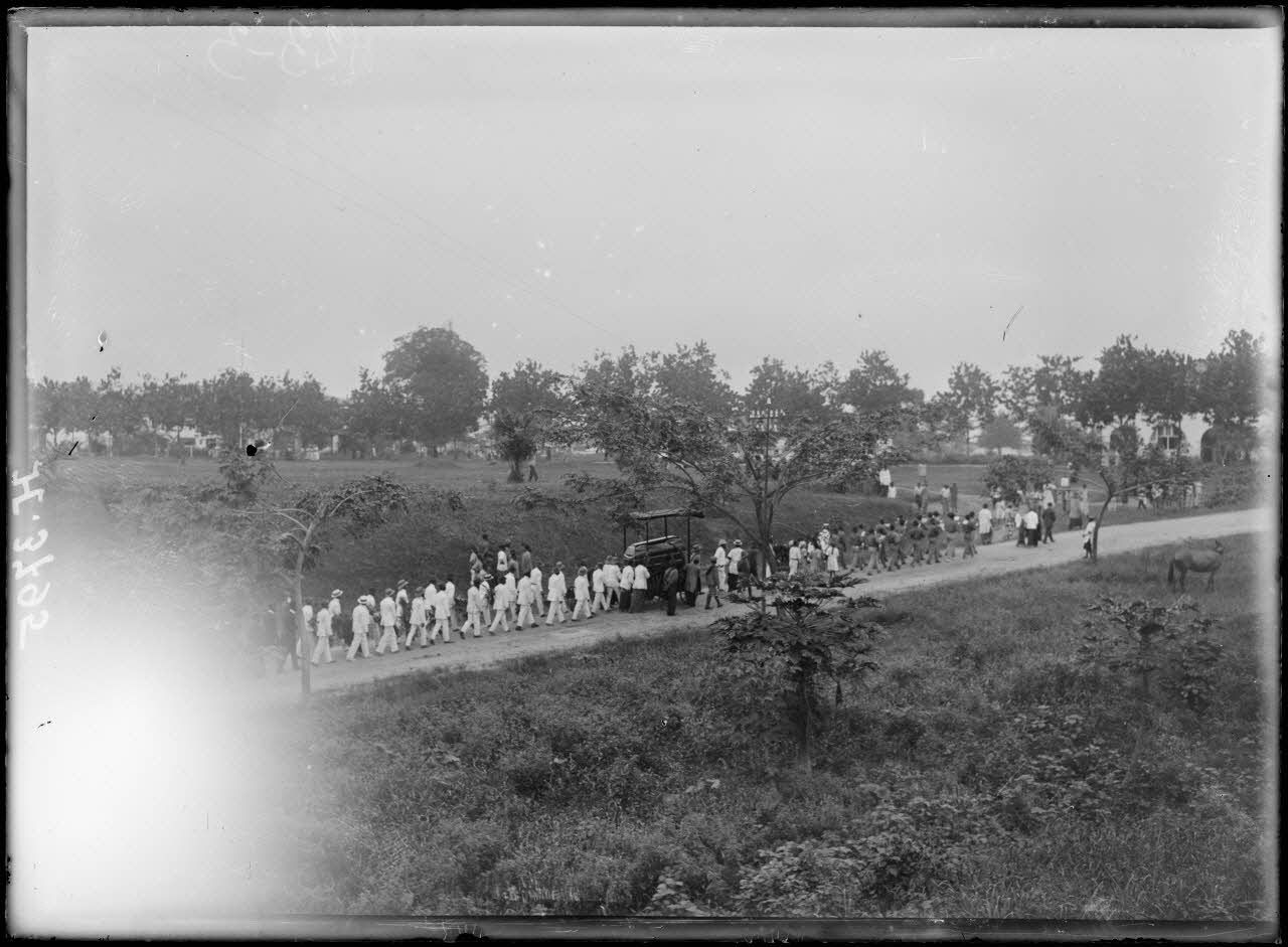 Douala. Funérailles du roi Dika Akwa. Le cortège. [légende d'origine]