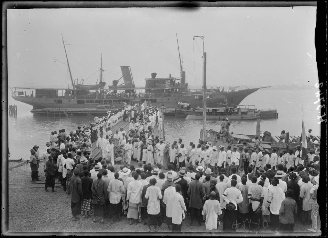 Douala. Funérailles du roi Dika Akwa, le cortège sur le wharf. [légende d'origine]