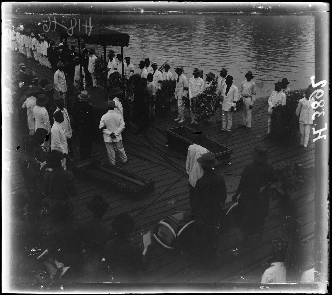 Le 28 décembre 1916 ont lieu les funérailles du roi Dika. Les ordonnateurs de la cérémonie attendent sur le wharf l'arrivée de la dépouille.