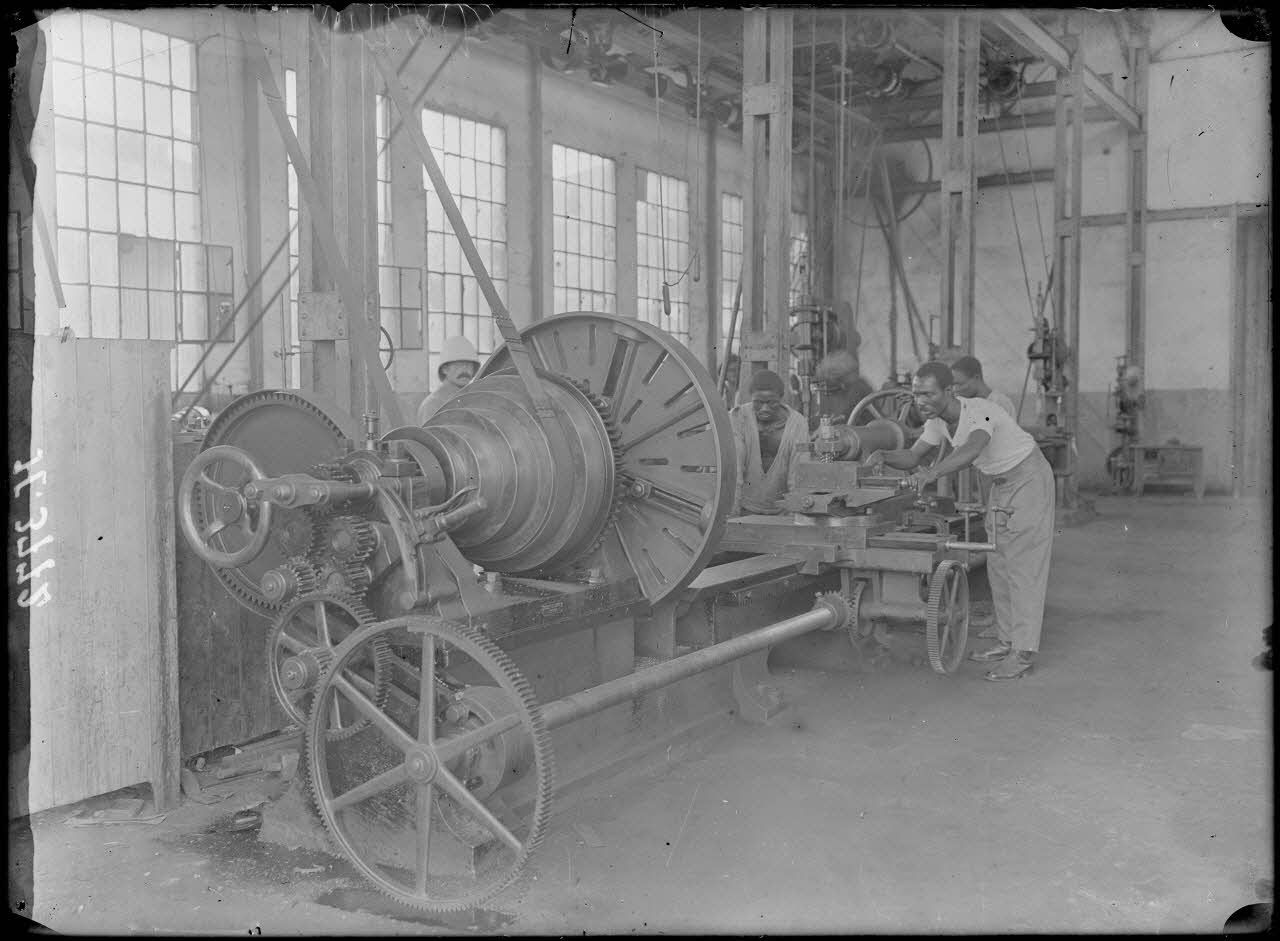 Dans le port, des chalands et des pirogues longent les quais où sont établis des ateliers de métaux, de bouées et une factorerie. Les ateliers sont équipés de tour parallèle de 6 mètres.