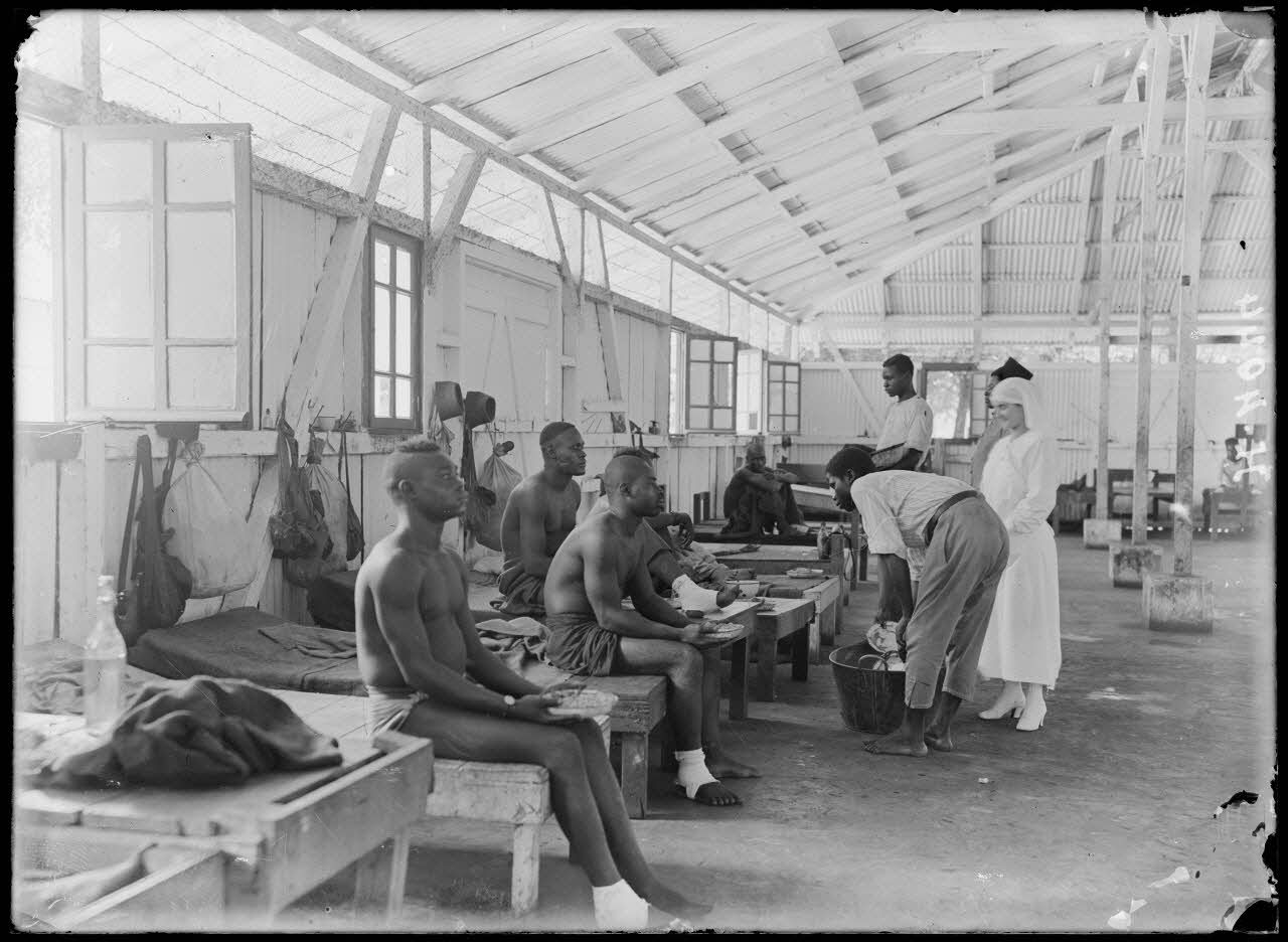 Douala. Hôpital indigène. Pansement d'un blessé.